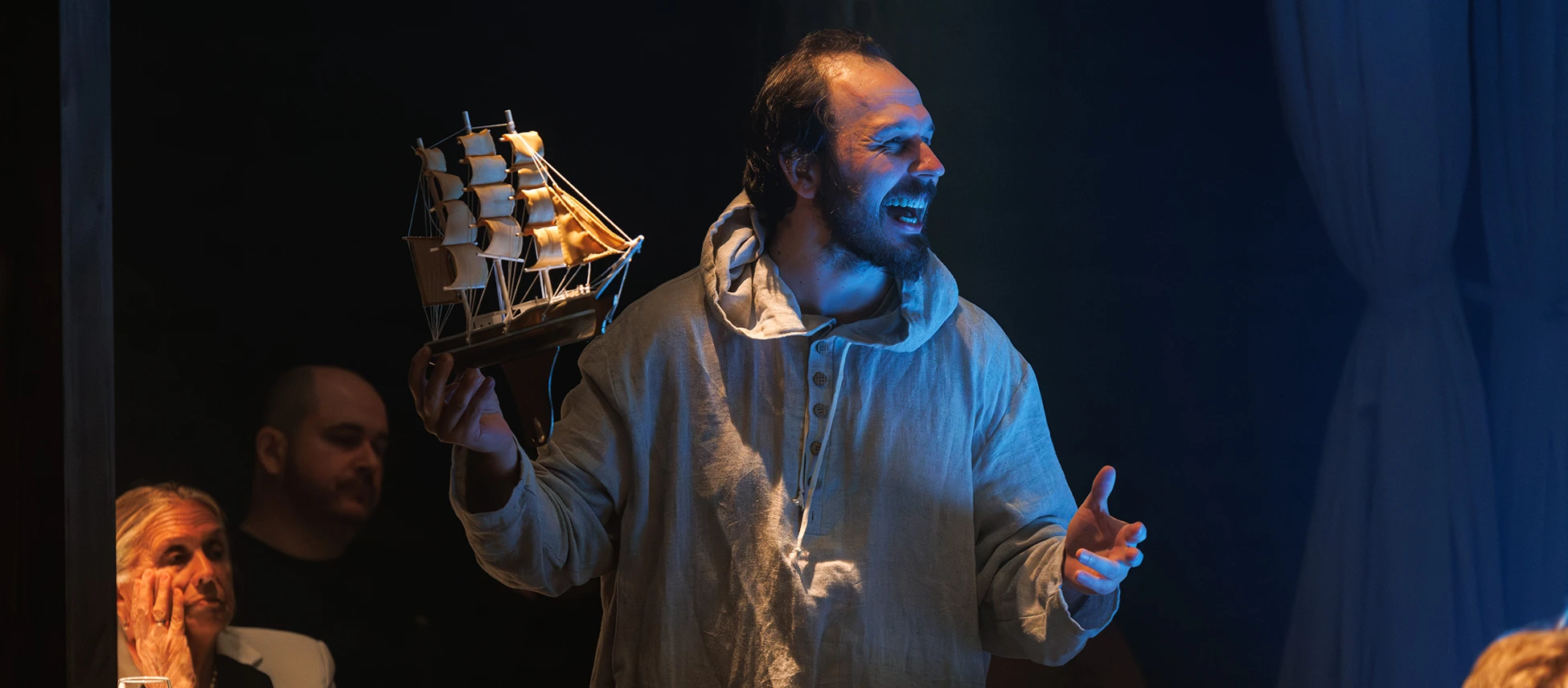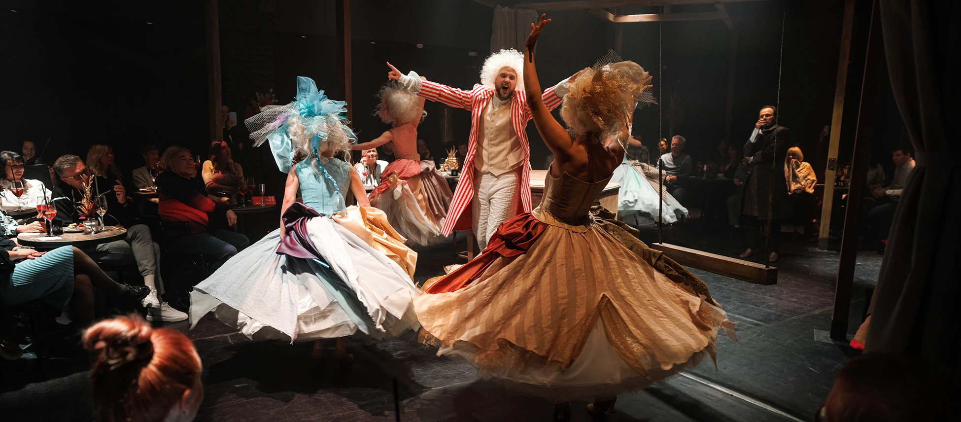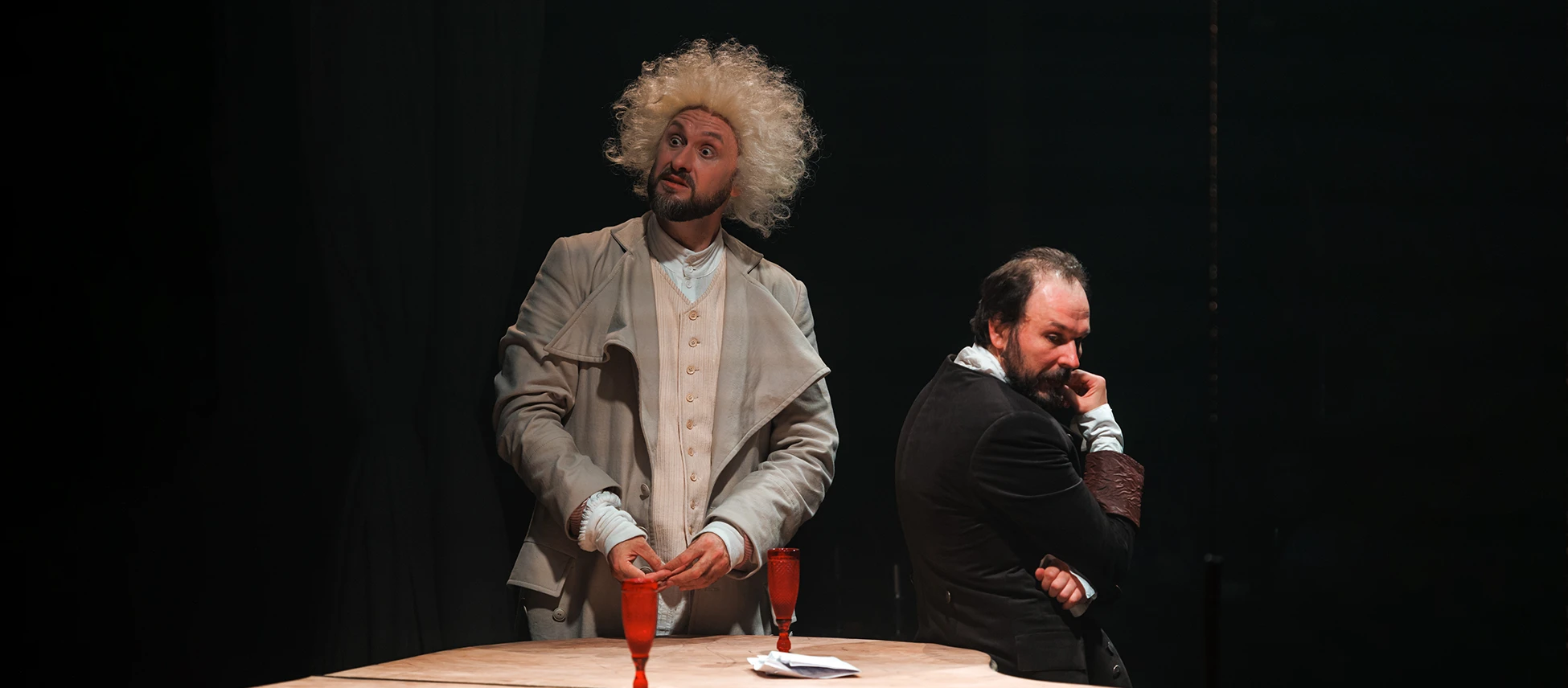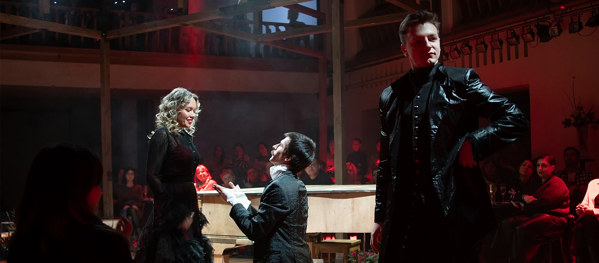 Режиссер Олег Рыбкин, объединив в своем спектакле героев произведений «Сцены из Фауста» и «Маленькие трагедии», исследует не столько вопросы нравственности и трагической судьбы личности, жаждущей самоутверждения любой ценой. Он обращается к самой метафизике – исследованию природы реальности, мира и бытия посредством разума. Герои «Маленьких трагедий» — лишь изящные игрушки в литературно-музыкальном салоне, где продолжают вечную дуэль Фауст и Мефистофель. А кто кого здесь искушает, наказывает или одаряет, сможет решить только зритель. Всё сон здесь, всё условность, всё – иллюзия… Границы меж добром и злом, пороком и добродетелью непрочны и зыбки. Быть может, вся наша жизнь — лишь игра скучающих умов?..
